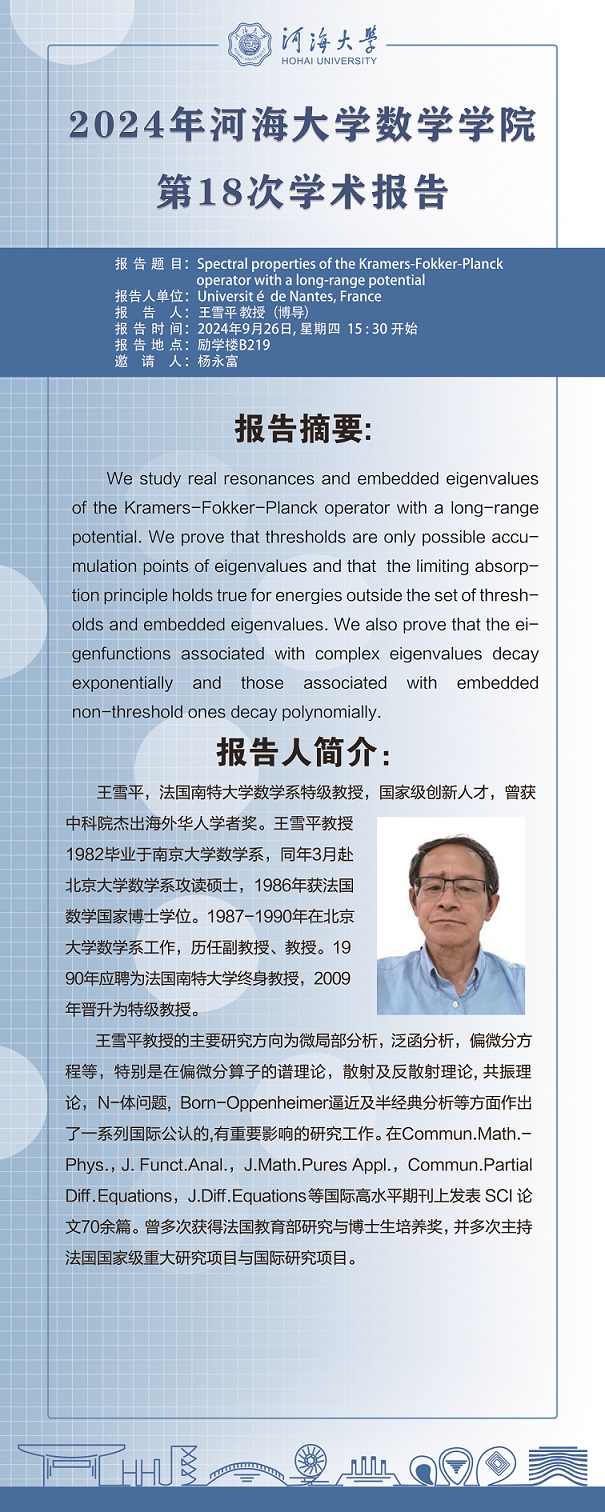 好色tv 第18次学术报告:Spectral properties of the Kramers-Fokker -Planck operator with a long-range potential