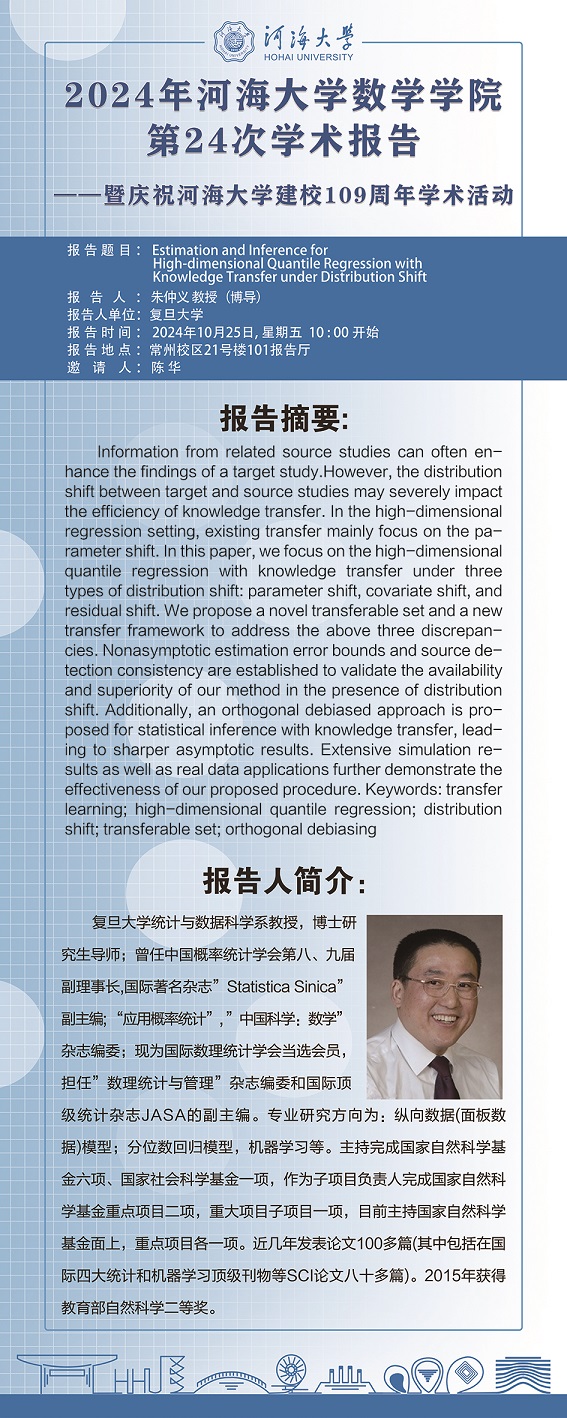好色tv 第24次学术报告:Estimation and Inference for High-dimensional Quantile Regression with Knowledge Transfer under Distribution Shift