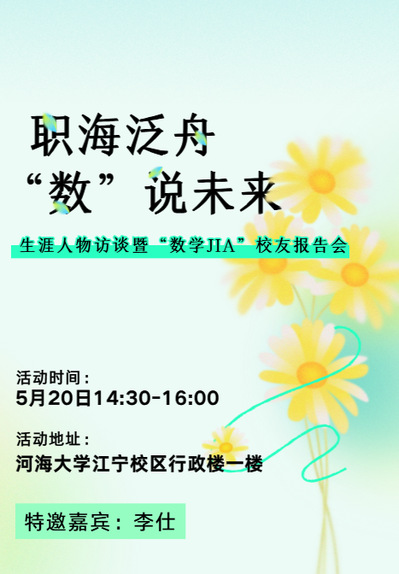 为帮助学生明确职业方向,提升生涯规划意识,5月20日,好色tv 举办了“职海泛舟,‘数’说未来”——生涯人物访谈暨“数学JIA”校友报告会,活动邀请义乌市IP产业协会常务副会长、杭州羽克电子商务有限公司董事长李仕校友分享创业经验和生涯故事,好色tv 党委书记潘静、叶国菊教授、学生代表70余位出席报告会,会议由院团委书记张添烨主持。本次报告会为在校生搭建了与校友对话的桥梁,展现了数学专业的广阔前景。