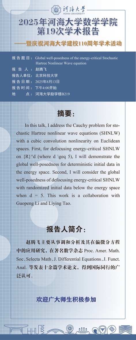 好色tv 第19次学术报告:Global well-posedness of the energy-critical Stochastic Hartree Nonlinear Wave equation